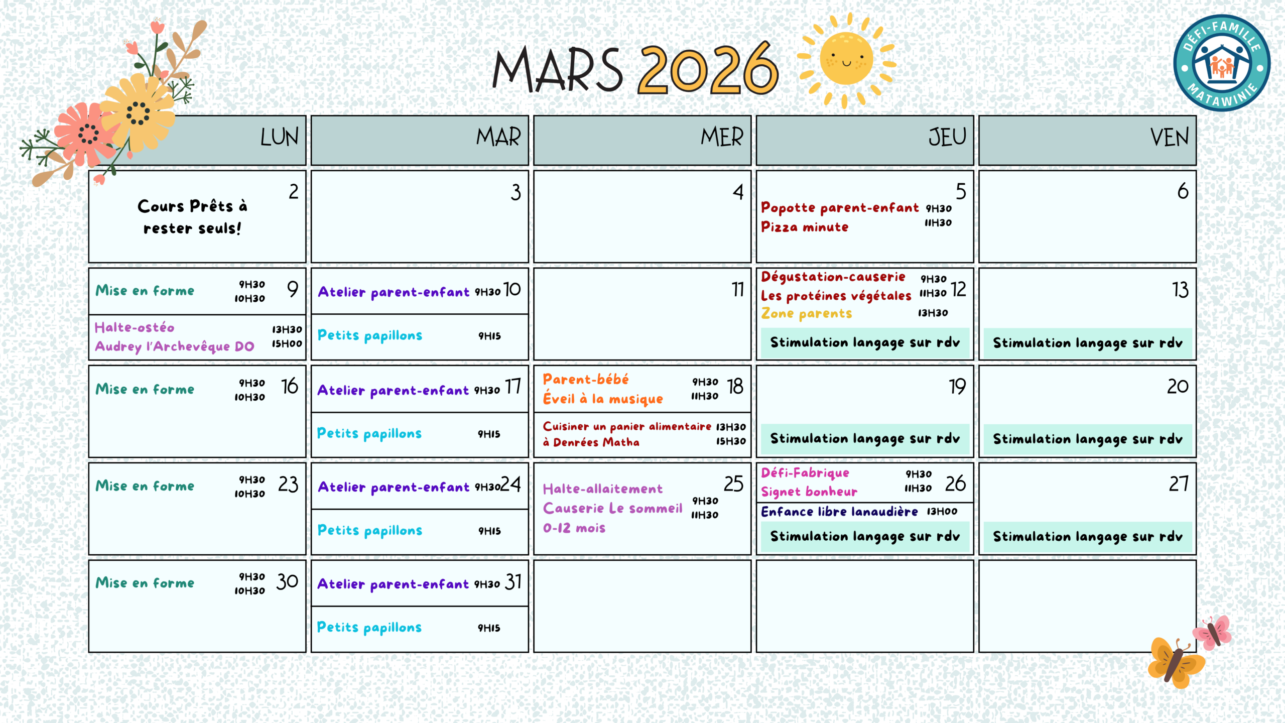 À Défi-Famille Matawinie, on ne s’ennuie jamais! Chaque mois, de nombreux ateliers et activités sont organisés!