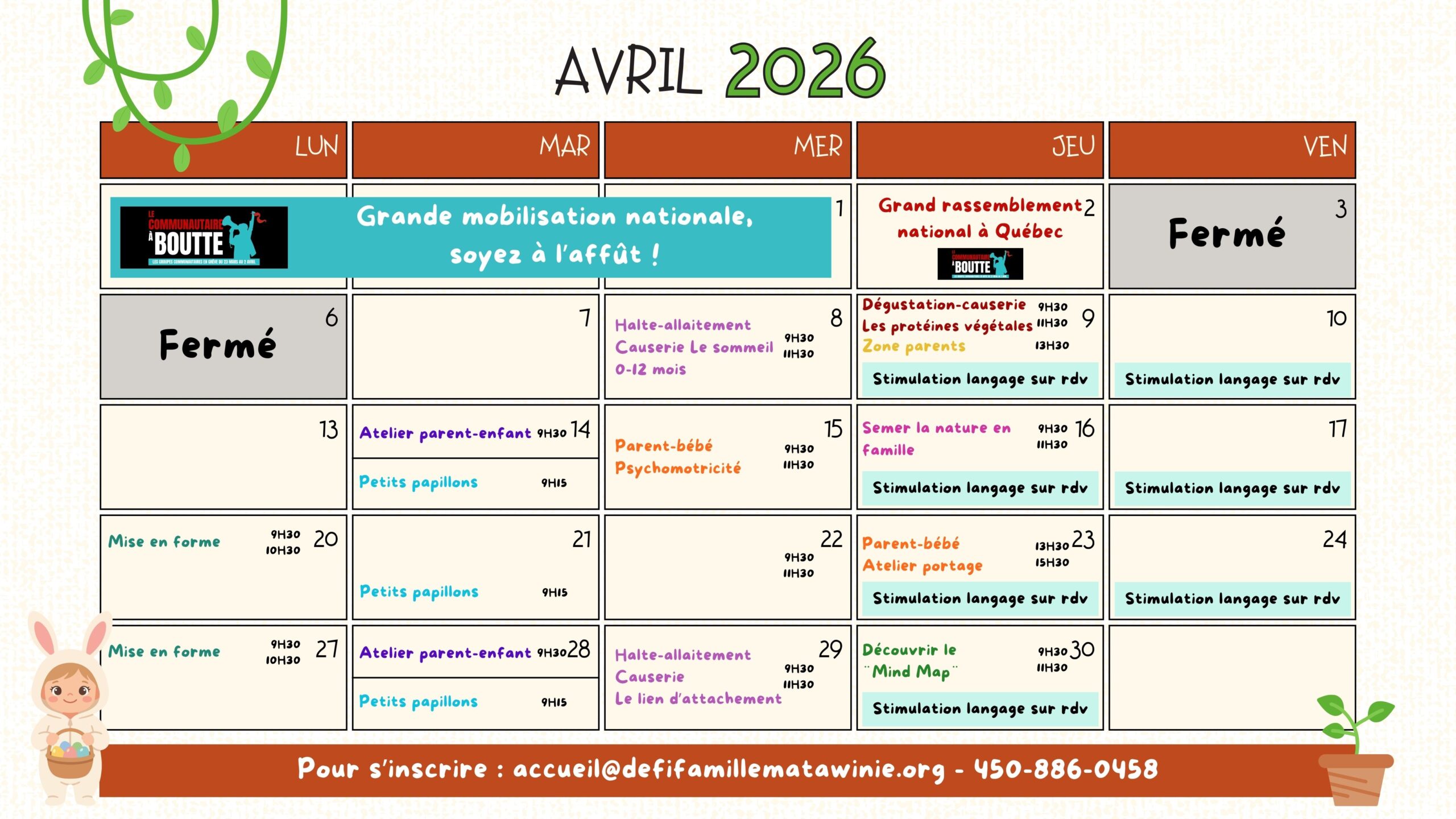 Consultez le calendrier ci-dessous et contactez-nous!